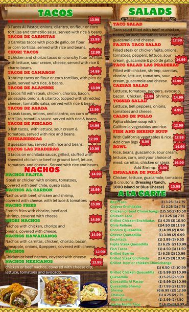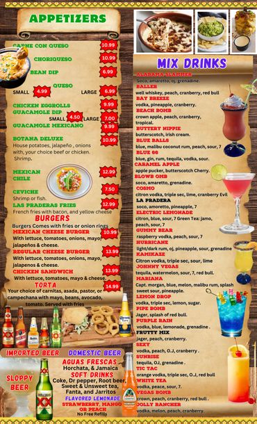 At Las Praderas Mexican Bar & Grill, we celebrate the rich flavors of traditional Mexican food. Our chefs use authentic recipes and fresh ingredients to bring the essence of Mexico to your table.